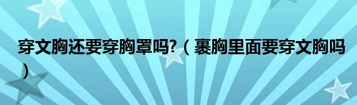 穿文胸还要穿胸罩吗?(裹胸里面要穿文胸吗)