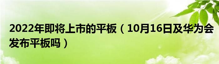大家好,小常来为大家解答以上问题。2022年即将上市的平板,10月16日及华为会发布平板吗很多人还不知道,现在让我们一起来看看吧!