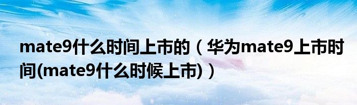 1.华为mate9于2016年11月14日上市销售。Mate9非常不错哦,可以到体验店体验或者到官网查询参数信息:系统:Mate9基于安卓0系统,搭载的华为 EMUI 0的操作系统,还有较高的麒麟960,八核 + 微智核I6处理器。