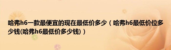 大家好,小常来为大家解答以上问题。哈弗h6一款最便宜的现在最低价多少,哈弗h6最低价位多少钱(哈弗h6最低价多少钱)很多人还不知道,现在让我们一起来看看吧!