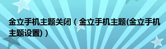 大家好,小常来为大家解答以上问题。金立手机主题关闭,金立手机主题(金立手机主题设置)很多人还不知道,现在让我们一起来看看吧!
