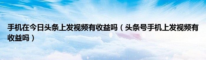 大家好,跳跳为你解答以上问题。手机在今日头条上发视频有收益吗,头条号手机上发视频有收益吗这个问题很多人还不知道,现在让我们一起来看看吧!