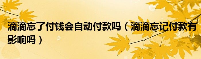 大家好,跳跳为你解答以上问题。滴滴忘了付钱会自动付款吗,滴滴忘记付款有影响吗这个问题很多人还不知道,现在让我们一起来看看吧!