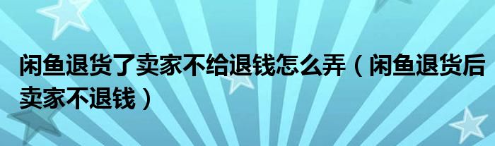 大家好,跳跳为你解答以上问题。闲鱼退货了卖家不给退钱怎么弄,闲鱼退货后卖家不退钱这个问题很多人还不知道,现在让我们一起来看看吧!