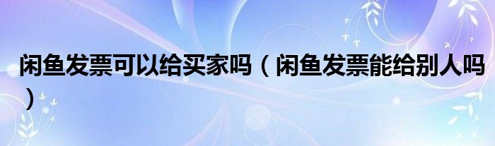 大家好,跳跳为你解答以上问题。闲鱼发票可以给买家吗,闲鱼发票能给别人吗这个问题很多人还不知道,现在让我们一起来看看吧!