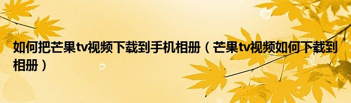 大家好,跳跳为你解答以上问题。如何把芒果tv视频下载到手机相册,芒果tv视频如何下载到相册这个问题很多人还不知道,现在让我们一起来看看吧!