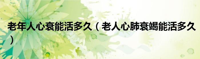 大家好,linda来为大家解答以上的问题。老年人心衰能活多久,老人心肺衰竭能活多久很多人还不知道,现在让我们一起来看看吧!
