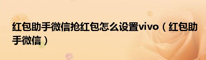 大家好,小晋来为大家解答以下问题,关于红包助手微信抢红包怎么设置vivo,红包助手微信很多人还不知道,今天让我们一起来看看吧!