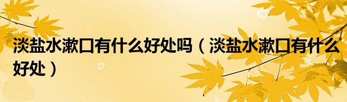 大家好,linda来为大家解答以上的问题。淡盐水漱口有什么好处吗,淡盐水漱口有什么好处很多人还不知道,现在让我们一起来看看吧!