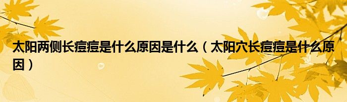 大家好,linda来为大家解答以上的问题。太阳两侧长痘痘是什么原因是什么,太阳穴长痘痘是什么原因很多人还不知道,现在让我们一起来看看吧!