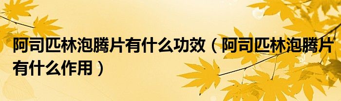 1、阿司匹林泡腾片用来预防心脑血管疾病的时候,使用的是小剂量的阿司匹林肠溶片。阿司匹林泡腾片有什么作用呢?阿司匹林泡腾片主要是用于普通感冒或者流行性感冒引起的发热,也可以缓解轻中度的疼痛,比如头痛、关节痛、偏头痛、牙痛、肌肉痛、神经痛,或者月经痛等等。阿司匹林泡腾片的剂量是100mg,用于解热6-14岁的儿童每次只能用半片,把它溶解的水中,混合溶解之后喝下去。14岁以上的儿童和成人可以每次用一片,也就是100mg,溶于水中喝下去。