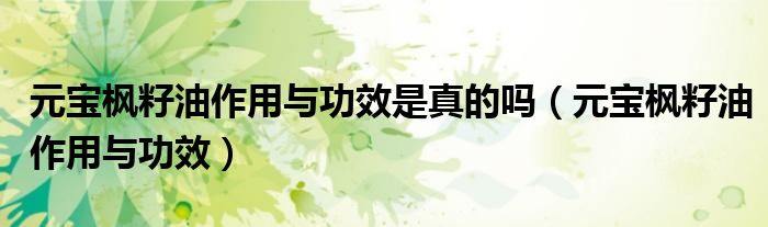 大家好,linda来为大家解答以上的问题。元宝枫籽油作用与功效是真的吗,元宝枫籽油作用与功效很多人还不知道,现在让我们一起来看看吧!