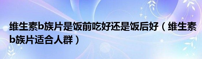 大家好,linda来为大家解答以上的问题。维生素b族片是饭前吃好还是饭后好,维生素b族片适合人群很多人还不知道,现在让我们一起来看看吧!