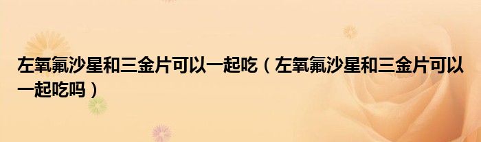 大家好,linda来为大家解答以上的问题。左氧氟沙星和三金片可以一起吃,左氧氟沙星和三金片可以一起吃吗很多人还不知道,现在让我们一起来看看吧!