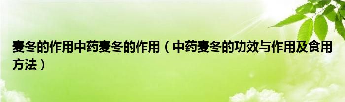 1、麦冬具有润肺养阴、益胃生津、清心除烦的作用。