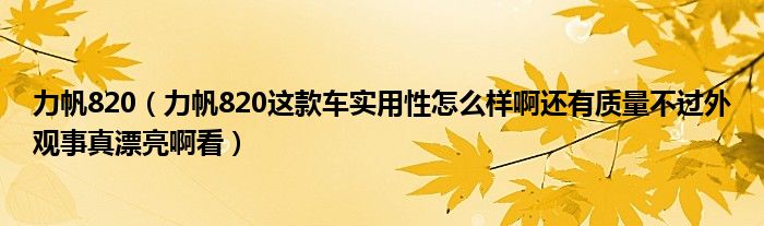 大家好,小常来为大家解答以下问题,对于力帆820,力帆820这款车实用性怎么样啊还有质量不过外观事真漂亮啊看很多人还不知道,今天让我们一起来看看吧!