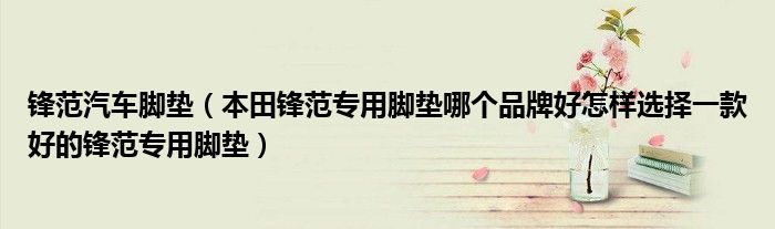 1,本田锋范专用脚垫哪个品牌好怎样选择一款好的锋范专用脚垫:原厂的脚垫最好,选择别的专用 脚垫,主要是要看有没有妨碍正常使用