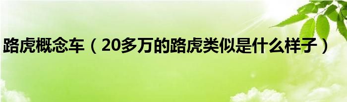 大家好,小常来为大家解答以下问题,对于路虎概念车,20多万的路虎类似是什么样子很多人还不知道,今天让我们一起来看看吧!