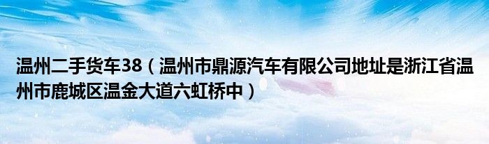大家好,小常来为大家解答以下问题,对于温州二手货车38,温州市鼎源汽车有限公司地址是浙江省温州市鹿城区温金大道六虹桥中很多人还不知道,今天让我们一起来看看吧!