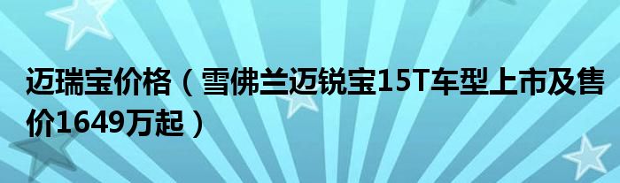 大家好,小常来为大家解答以下问题,对于迈瑞宝价格,雪佛兰迈锐宝15T车型上市及售价1649万起很多人还不知道,今天让我们一起来看看吧!