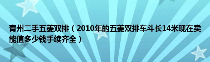 1,2010年的五菱双排车斗长14米现在卖能值多少钱手续齐全 :如果没有发生过大的事故,手续没有问题,车子没有泡过水的情况下应该在一万一二左右,具体看实际车况。