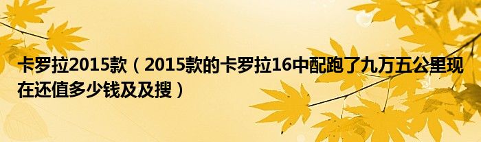 大家好,小常来为大家解答以下问题,对于卡罗拉2015款,2015款的卡罗拉16中配跑了九万五公里现在还值多少钱及及搜很多人还不知道,今天让我们一起来看看吧!
