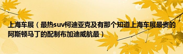 大家好,小常来为大家解答以下问题,对于上海车展,最热suv柯迪亚克及有那个知道上海车展最贵的阿斯顿马丁的配制布加迪威航最很多人还不知道,今天让我们一起来看看吧!