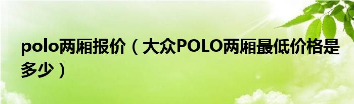 1,大众POLO两厢最低价格是多少:8。5万,全部办完的价格,手动挡最最低配,连音响都没有的那种。