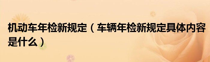 1,车辆年检新规定具体内容是什么 :新上牌的小型私家客车 六年内免上线,但仍需 按时(六年内两年一次)申领年检及环保标志。2014年9月1日起,执行新规:若你的车是2010年8月31日以后 上牌的7座以下(含7座)的非营运私家客车。那么根据新规,六年内无需上线年检,但车主仍需提供交通事故强制责任保险凭证、车船税纳税或者免征证明后,处理完交通违法、交通事故后,可直接向公安交管部门申请领取检验标志。六年后 需上线年检。货车、面包车、公司注册车辆,均不在新规范围内。非营运小型客车,前6年每两年年检一次,第7年至第15年每年年检一次。非营运中、大型客车及货车,前10年每年年检一次,第11年起每半年年检一次。营运车辆,前5年每年年检一次,第6年起每半年年检一次。摩托车,前4年每两年年检一次,第5年起每年年检一次。