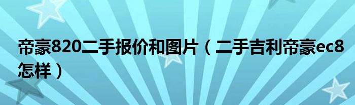 大家好,小常来为大家解答以下问题,对于帝豪820二手报价和图片,二手吉利帝豪ec8怎样很多人还不知道,今天让我们一起来看看吧!