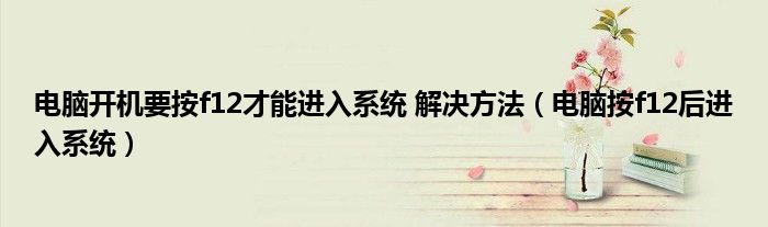 大家好,小晋来为大家解答以下问题,关于电脑开机要按f12才能进入系统 解决方法,电脑按f12后进入系统很多人还不知道,今天让我们一起来看看吧!