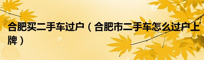 4,合肥二手车过户、入户流程! :二手车过户首先要带上车辆登记证书,行驶证,买卖双方的身份证,(如果买方是外地户口,需要办理合肥本地的暂住证)到开交易票的公司,开正规的车辆交易票;然后带好证件去车管所,(有纬一路的包河车管所与大蜀山车管所可以过户)先给汽车拓印外检,然后把相关证件交给办理的工作人员,按照工作人员的指示办理选牌照(现在二手车都需要重新上牌照),按照程序走完就OK。这是安徽搜车网给予您的回答,望采纳~