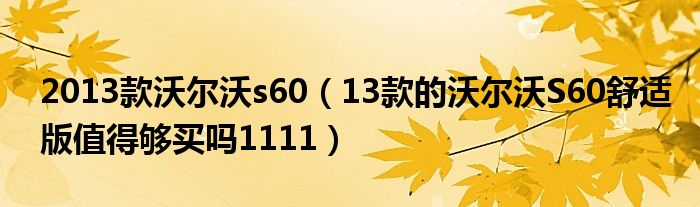 1,13款的沃尔沃S60舒适版值得够买吗1111 :如果不差钱。买来可以。沃尔沃的车还是不错的。