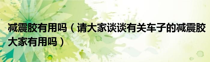 大家好,小常来为大家解答以下问题,对于减震胶有用吗,请大家谈谈有关车子的减震胶大家有用吗很多人还不知道,今天让我们一起来看看吧!