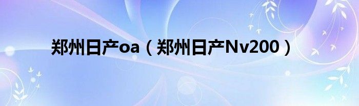 大家好,小常来为大家解答以下问题,对于郑州日产oa,郑州日产Nv200很多人还不知道,今天让我们一起来看看吧!