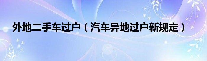 1,汽车异地过户新规定 :异地车辆是能过户的,包括外地车跨省过户,只要带齐了文件和相关资料,去到相关地点办理手续就行。异地车辆过户的过程和注意事项如下1、要保证汽车尾气排放量达到标准再开始办理手续。2、要准备好一些相关的资料:(1)身份证件,双方的,要准备两份,一份原件一份复印件;(2)买汽车的时候的原始发票;(3)车辆行驶证,需要原件和复印件;(4)需要过户汽车的机动车登记证;3、准备齐证件以后就要到本地车管所和异地车管所办理相关手续,首先去到本地车管所进行嫌疑车调查,确认相符没有问题。
