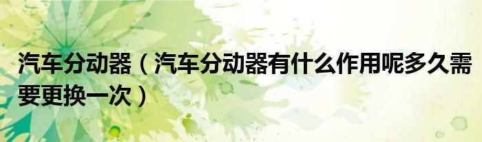1,汽车分动器有什么作用呢多久需要更换一次 :多轴驱动时需要加装分动器 如四轮驱动的越野车啊 主要是为了合理分配发动机的动力到各驱动轮 一般不容易损坏
