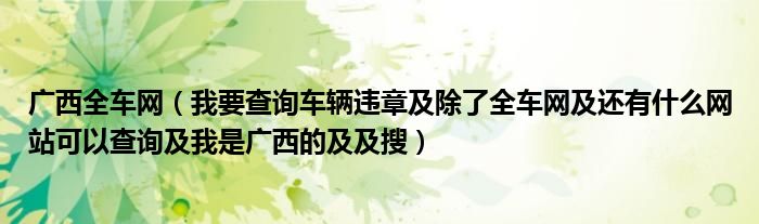 大家好,小常来为大家解答以下问题,对于广西全车网,我要查询车辆违章及除了全车网及还有什么网站可以查询及我是广西的及及搜很多人还不知道,今天让我们一起来看看吧!