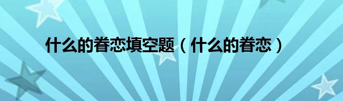 大家好,小晋来为大家解答以下问题,关于什么的眷恋填空题,什么的眷恋很多人还不知道,今天让我们一起来看看吧!