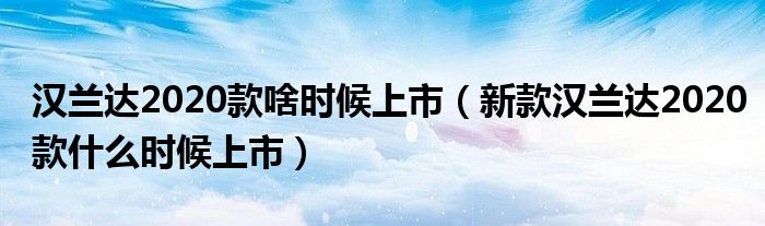 大家好,阳阳来为大家讲解下。汉兰达2020款啥时候上市,新款汉兰达2020款什么时候上市很多人还不知道,现在让我们一起来看看吧!