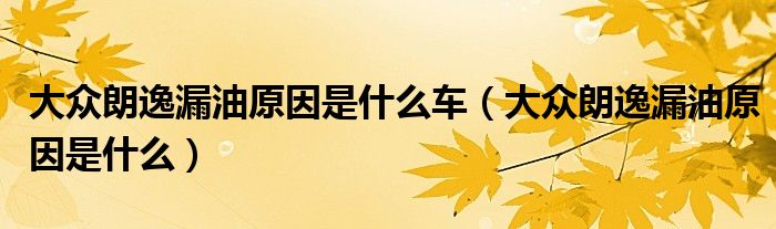 大家好,阳阳来为大家讲解下。大众朗逸漏油原因是什么车,大众朗逸漏油原因是什么很多人还不知道,现在让我们一起来看看吧!