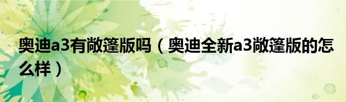 大家好,阳阳来为大家讲解下。奥迪a3有敞篷版吗,奥迪全新a3敞篷版的怎么样很多人还不知道,现在让我们一起来看看吧!