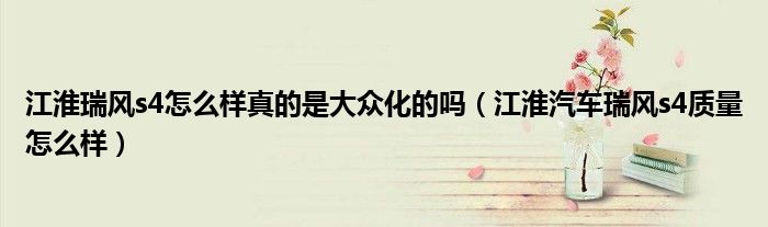 大家好,阳阳来为大家讲解下。江淮瑞风s4怎么样真的是大众化的吗,江淮汽车瑞风s4质量怎么样很多人还不知道,现在让我们一起来看看吧!