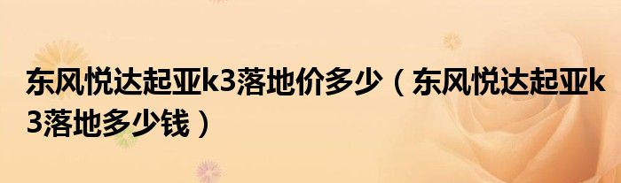 大家好,阳阳来为大家讲解下。东风悦达起亚k3落地价多少,东风悦达起亚k3落地多少钱很多人还不知道,现在让我们一起来看看吧!