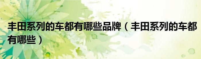 大家好,阳阳来为大家讲解下。丰田系列的车都有哪些品牌,丰田系列的车都有哪些很多人还不知道,现在让我们一起来看看吧!