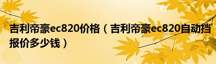 大家好,阳阳来为大家讲解下。吉利帝豪ec820价格,吉利帝豪ec820自动挡报价多少钱很多人还不知道,现在让我们一起来看看吧!