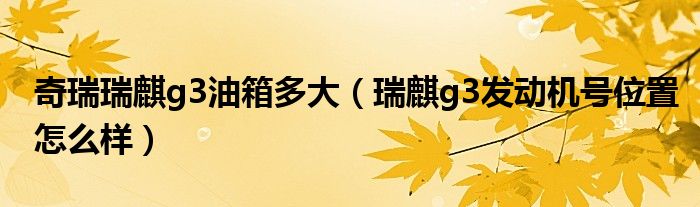 大家好,阳阳来为大家讲解下。奇瑞瑞麒g3油箱多大,瑞麒g3发动机号位置怎么样很多人还不知道,现在让我们一起来看看吧!