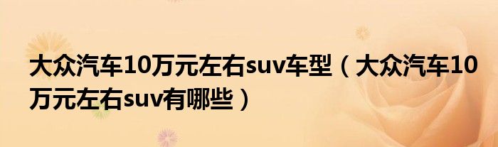 大家好,小美来为大家解答以上问题。大众汽车10万元左右suv车型,大众汽车10万元左右suv有哪些很多人还不知道,现在让我们一起来看看吧!