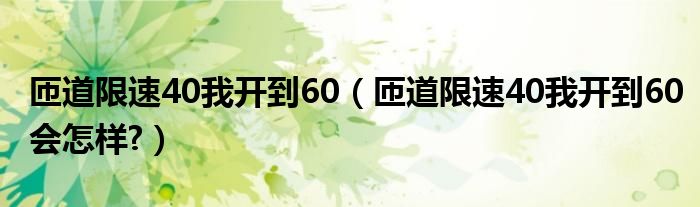 大家好,小美来为大家解答以上问题。匝道限速40我开到60,匝道限速40我开到60会怎样?很多人还不知道,现在让我们一起来看看吧!