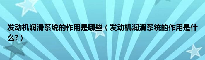 大家好,小美来为大家解答以上问题。发动机润滑系统的作用是哪些,发动机润滑系统的作用是什么?很多人还不知道,现在让我们一起来看看吧!